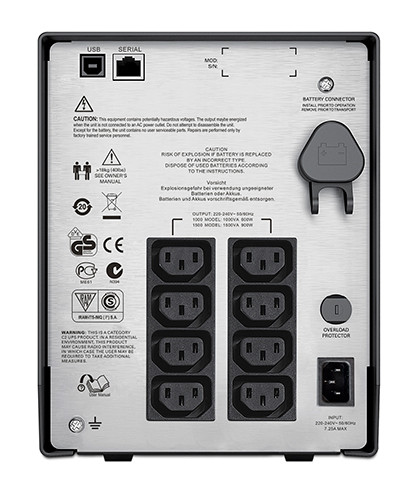 Bộ lưu điện APC Smart SMC1500I trang bị cổng USB và Serial phục vụ cho việc quản lý UPS, giúp kết nối với nhiều thiết bị hỗ trợ cổng USB. Bộ lưu điện còn có số lượng khe cắm ngõ ra lớn, tất cả các ngõ ra đều được bảo vệ, ngăn chặn dòng xung sét.