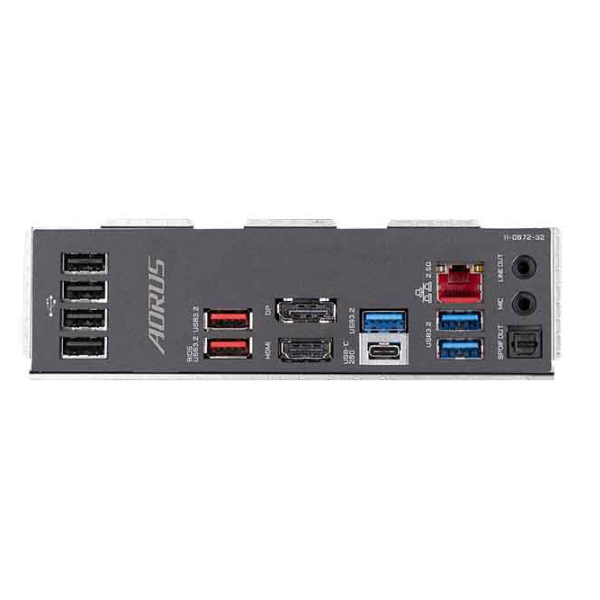 Cổng giao tiếp ngoài : 1 x USB Type-C® port, with USB 3.2 Gen 2×2 support 2 x USB 3.2 Gen 2 Type-A ports (red) 3 x USB 3.2 Gen 1 ports 4 x USB 2.0/1.1 ports 1 x HDMI port 1 x DisplayPort 1 x RJ-45 port 1 x optical S/PDIF Out connector 2 x audio jacks