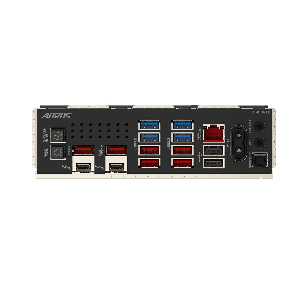 1 cổng RJ-45 10Gb, cổng S/PDIF, 2 jack âm thanh, kết nối ăng-ten Wi-Fi
